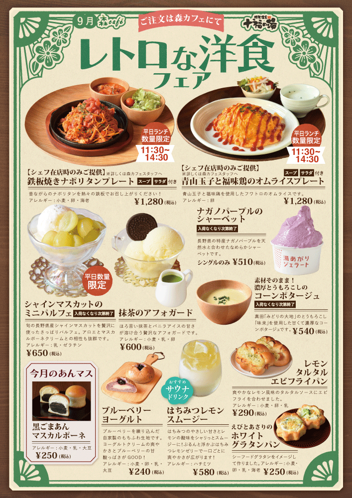 【9月】森のレストラン森カフェ「レトロな洋食フェア」