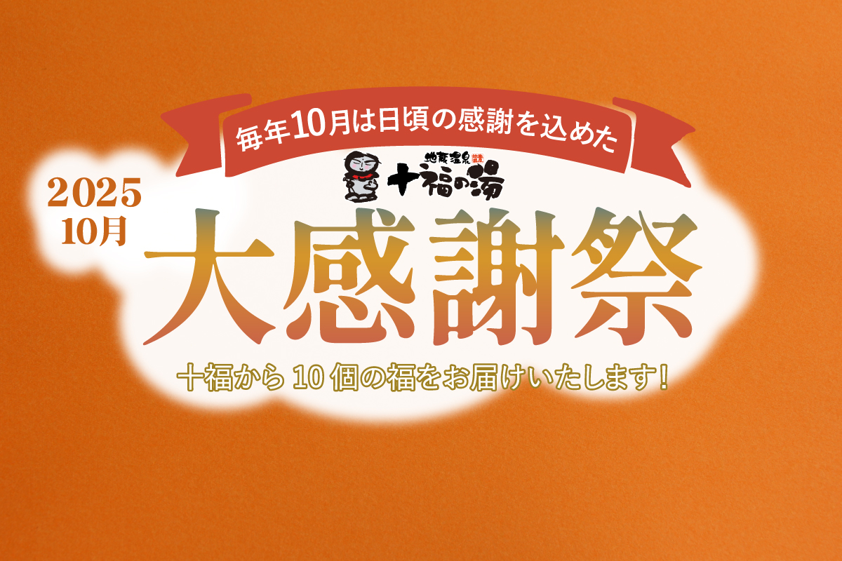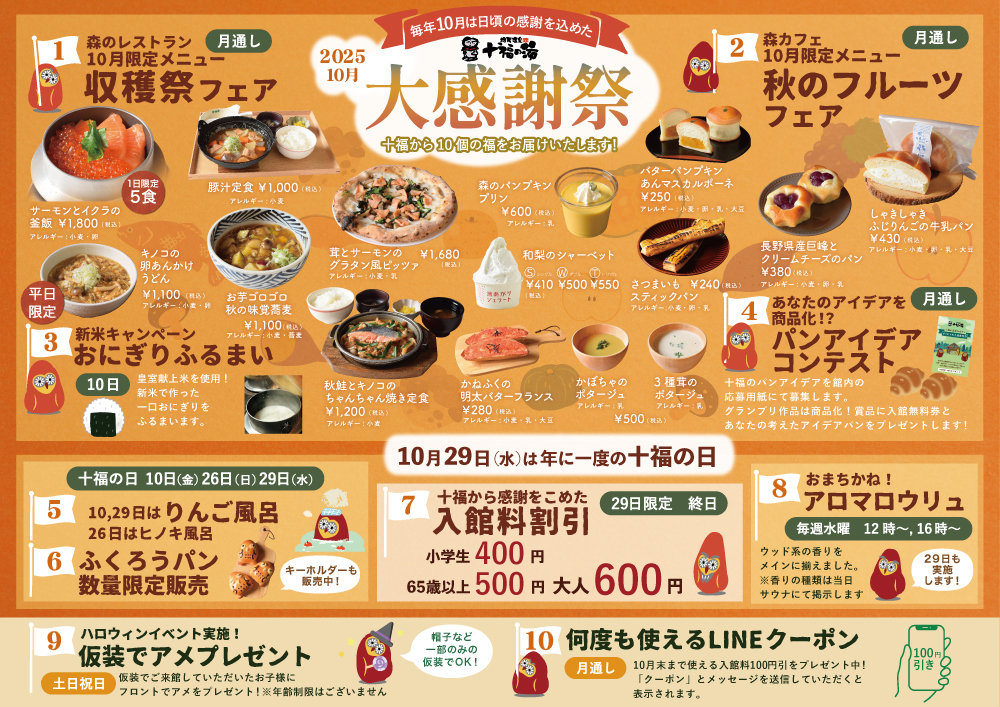 【10月イベント&フェア】十福の湯大感謝祭 森のレストラン「収穫祭フェア」森カフェ「秋のフルーツフェア」